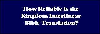 Jehovah's Witnesses believe they have the most accurate translation of the Bible available. They firmly believe this although their New World Translation was done without any Greek or Hebrew scholars. Their Mother Organization, the Watchtower Bible & Tract Society of Brooklyn, New York has promised them accuracy to the original languages, never more so than in the New Testament portion of the Scriptures. They even published two Kingdom Interlinear Translations, (KIT) and made the following promises: "We offer no paraphrase of the Scriptures"..."nearly as possible word for word, the exact statement of the original"...To each major word we have assigned one meaning and have held to that meaning...". (Page 9, 1985 ed.) They further boldly state on page 8 of the same edition, "...There is no benefit in self-deception...those who provide a translation for the spiritual instruction of others come under a special responsibility as teachers before the Divine Judge. Hence we are aware of the need to be careful." But, have they been "careful"? Did they really translate word-for-word in every case, or paraphrase were it suited their own doctrines? Did they really keep to one meaning per word as promised, or have they blatantly tampered with the text? Did the Watchtower "translators" not only engage in self-deception, but deliberately set out to deceive their followers? We'll let the reader decide for himself as we answer the question, "How reliable is the Kingdom Interlinear Translation of the Bible? Since the New World Translation (NWT) is based on the KIT, is it to be trusted, or viewed with suspicion? Let's begin with John 8:58. The NWT Bible reads: "Jesus said to them: "Most truly I say to YOU, Before Abraham came into existence, I have been." This decidedly odd rendering has caused much "tense confusion" to the Watchtower. The footnote in the 1969 purple-cover edition of the KIT states that the "I have been" is "properly rendered in the perfect tense." However, in the l985 Navy-Blue-cover edition, the footnote states that "I have been" is "properly translated by the perfect indicative" (tense).