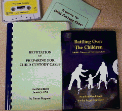 this booklet, Other Lawyers and Judges, former JW elders, and victims give their experiences in court.To counter this booklet, there has been prepared for the legal profession, a companion book called; Now, point by point, using their booklet and the "Refutation" book, the Lawyer representing the Non-JW parent can counter the JW testimony given under oath. At the crux of the matter is the Watchtower definition of a "lie". You should be aware that they believe they must tell the truth to only those who are "entitled to know the truth". This is "justified lying" in their minds. Since they also believe that all others except Jehovah's Witnesses are under the control of Satan, including the courts, they feel quite smug about doing so. Why make all this public? Because the children are systematically alienated from their peers, and even non -Witness relatives. They are put in harm's way, both emotionally and physically. The children are the real victims. We trust we have created a level playing field for them, because we see thousands of courtrooms turned into war zones as Jehovah's Witnesses battle over the children with their former mates. This DVD and the printed materials have been professionally prepared by people who were once members of the Watchtower Society and are also available by phone if necessary for additional help and guidance if you are preparing a case. Referrals to lawyers who have successfully used these materials are available. If you wish to talk with someone who has been involved with many successful court cases in the U.S. please contact us. Complete Package includes the 45 min. DVD: "Battling Over The Children" and the following items. The Watchtower Society's book: (Preparing for Child Custody Cases) of instructions for the JW mate, elders, and their lawyers. &, "Refutation" a well- indexed 388 pg. book of documentation to respond to every point their lawyer may try and bring up. (These items can be ordered separately, price includes GST in Canada.) DVD (if ordered separately) U.S. $